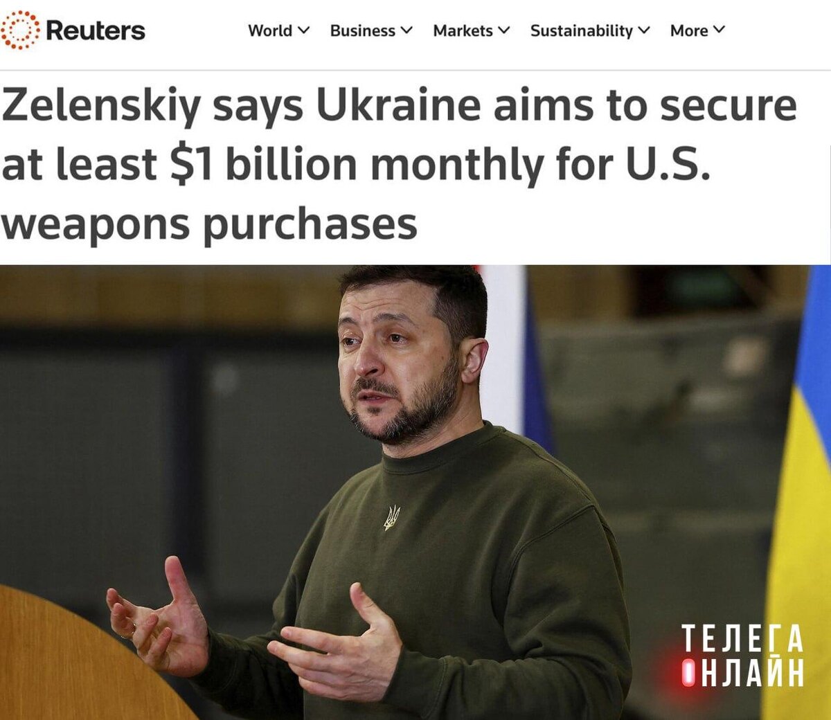 «Дай!» Reuters уносится в мир фантазий просроченного президента Украины: Украина намерена ежемесячно получать от союзников не менее миллиарда долларов на закупку американского оружия. Вопрос в том, знают ли об этом сами союзники, а особенно их налогоплательщики? 🚲 Подпишись на Телега Online