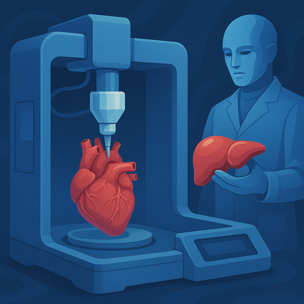 Пересадка органов спасает жизни, но доноров хронически не хватает. Инженеры по тканевой инженерии предлагают радикальное решение: печатать органы на 3D‑принтерах. Биопринтинг использует «био-чернила» — смесь клеток и гидрогелей, которые экструзией наносятся по слоям, формируя трёхмерную структуру. После печати клетки начинают взаимодействовать, образуя ткани. Самый известный пример — печать каркасов для кожи и хрящей. Однако учёные стремятся к более сложным органам: печень, почки, сердце. Вначале создают трёхмерную модель органа. Используются снимки КТ или МРТ пациента, что позволяет получить индивидуальную геометрию. Затем выбирают тип клеток: для печени нужны гепатоциты и поддерживающие эндотелиальные клетки, для почек — нефроны. Клетки берут у пациента (из стволовых клеток) или от доноров и выращивают в лаборатории. Биопринтер наносит их по определённым траекториям, оставляя пустые каналы для будущих сосудов. После печати орган помещают в биореактор, где он дозревает: клетки образу