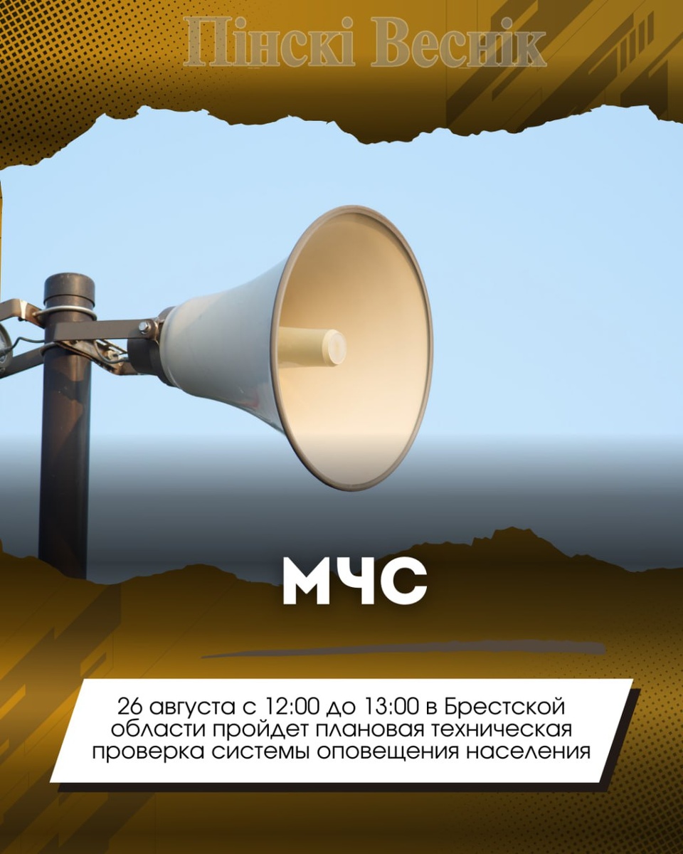 🤍26 августа с 12:00 до 13:00 в Брестской области пройдет плановая техническая проверка системы оповещения населения