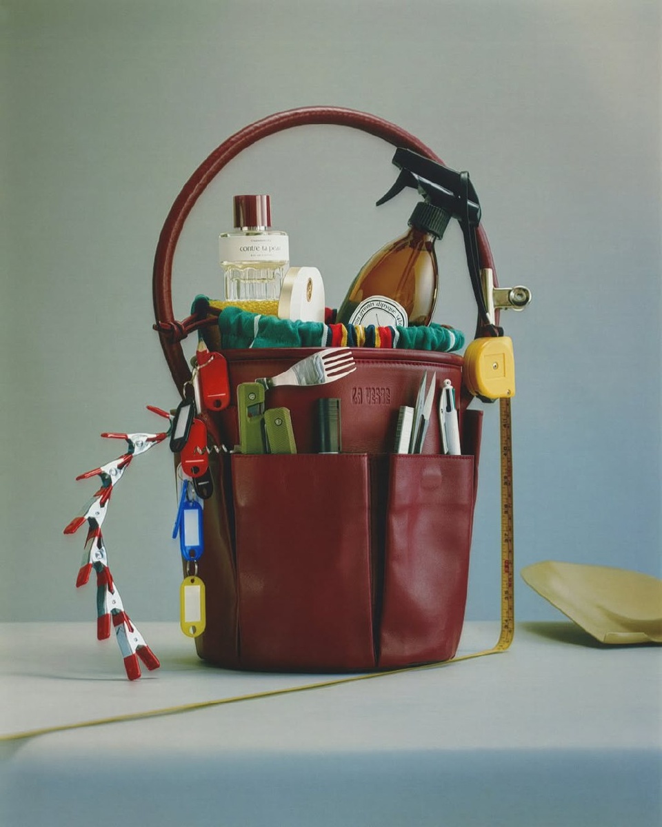 Что в сумке? Версия Schön Magazine — без громких имен, но с выразительным, характерным и предельно занимательным содержанием, Например, в тоуте -ведре бренда Бланки Миро La Veste можно углядеть садовые инструменты высоко чтимой японской марки Niwaki, а рядом с бьюти-кейсом Rimowa — футляр помады Dries Van Noten, чей дизайн упаковки сам по себе является произведением искусства.