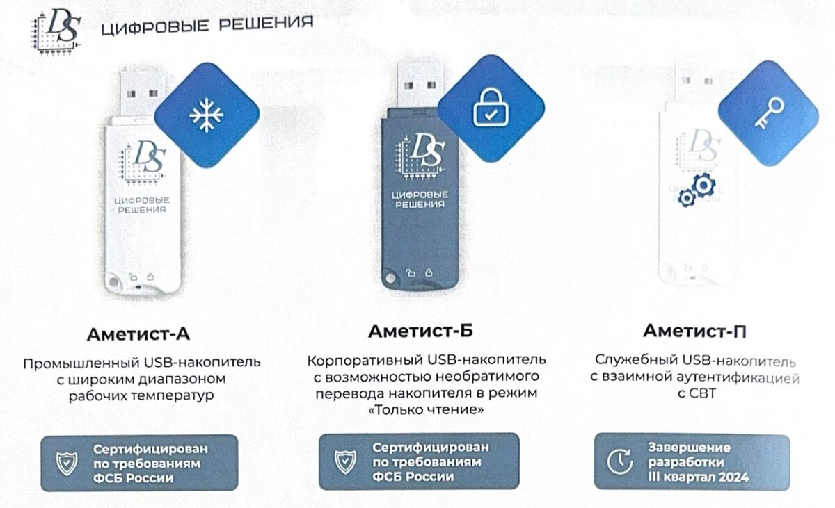 Доверенные USB-накопители Аметист с российским контроллером внутри от компании ЦИФРОВЫЕ РЕШЕНИЯ