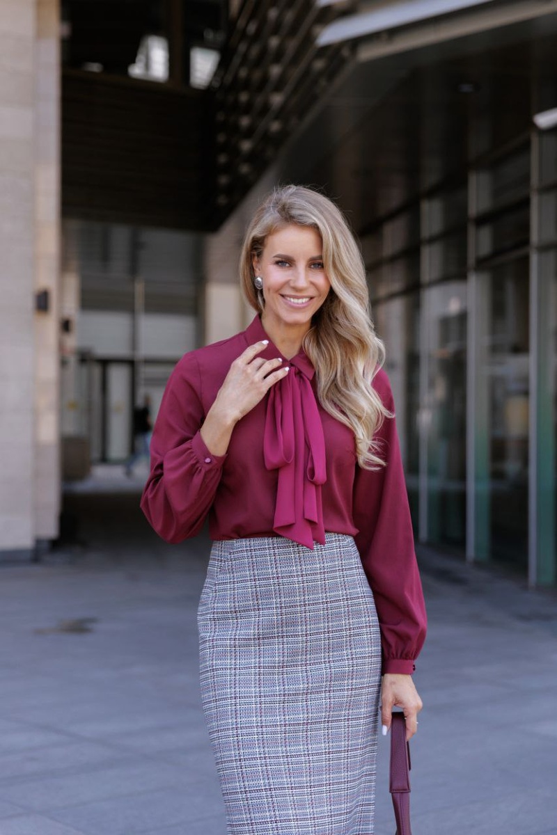 Почувствуйте себя неотразимой в этом изысканном сочетании! Насыщенная блуза цвета бургунди с элегантным бантом добавит вашему образу особый шарм, а классическая твидовая юбка привнесет нотку утонченности. Этот дуэт – ваш секрет безупречного стиля, который подчеркнет вашу индивидуальность. С коллекцией BUSINESS LINE вы всегда будете чувствовать себя уверенно и на высоте, где бы вы ни находились. Для заказа пишите на наш WhatsApp: https://wa.me/message/GESSL37P7LULC1
