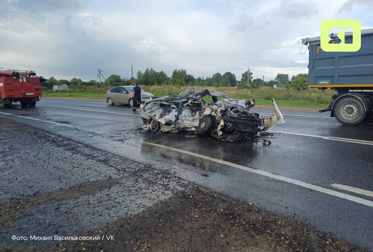 В ответ на пост ⚡️ Появились первые кадры с места смертельной аварии в Переславском округе На фото и видео видно, что легковой автомобиль был практически полностью уничтожен огнем, а грузовая машина съехала в кювет ⬆️ «По предварительной информации, водитель автомобиля «Шкода Октавия» пересек сплошную линию автомобильной разметки, выехал на полосу встречного движения и произвел столкновение с грузовым автомобилем «ДАФ», двигавшимся во встречном направлении» – сообщили в Прокуратуре Ярославской области. 💚 Подписаться | Прислать новость