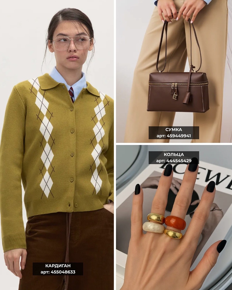Эта подборка — готовые «капсулы» в осенней палитре оливы, шоколада и карамели. Я разобрала каждый предмет с фото, указала артикулы, тонкости посадки и дала советы стилиста, чтобы вещи работали и отдельно, и вместе.