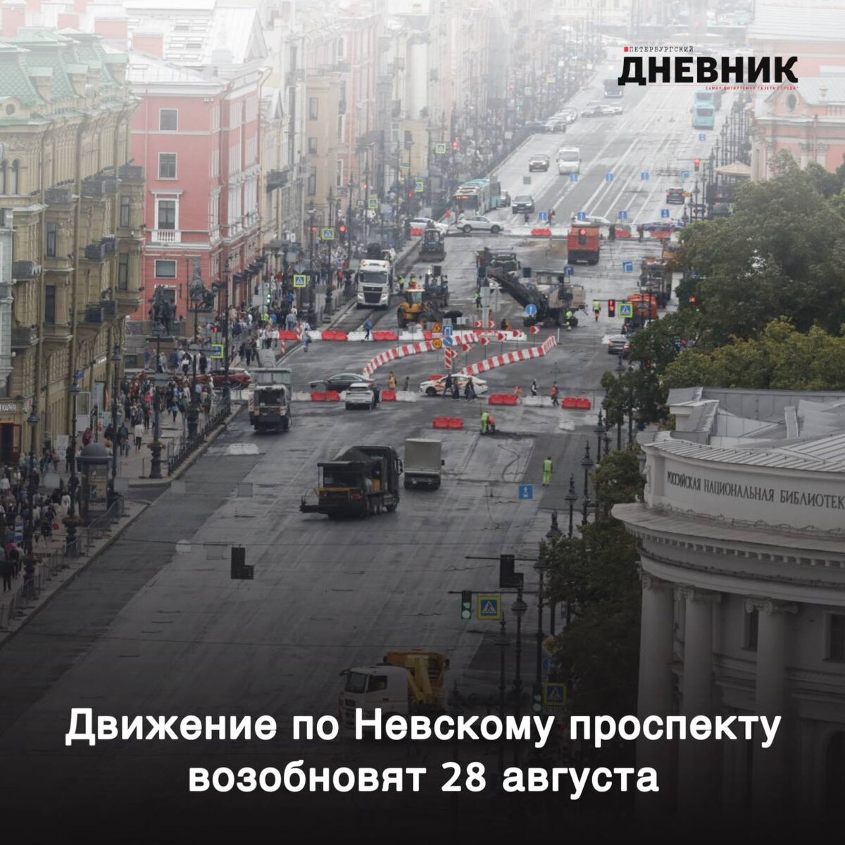 🚧 На Невском проспекте завершают масштабный ремонт Сейчас на участке ежедневно работают 275 специалистов и 145 единиц техники. Используется износостойкий асфальтобетон, а в местах с повышенной нагрузкой покрытие дополнительно укрепляют стальной сеткой. Качество контролируется в лабораторных условиях. Завершить ремонт планируют 27 августа, а уже 28 числа открыть движение транспорта. Фото: Александр Глуз Петербургский дневник