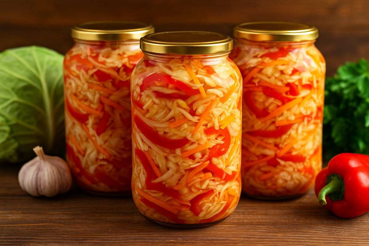 Когда лето вот-вот уползёт в закат, а овощи на рынке кричат: «Забери меня!», наступает тот самый момент. Время для заготовок. И один из самых крутых рецептов в этой теме — это, конечно, салат из капусты ассорти на зиму. Не банальная нарезка, а настоящий хит. Капуста плюс морковка, плюс перец, плюс немного магии — и ты уже не просто заготавливаешь, а творишь вкус будущей зимы. Это не просто салат. Это — витаминный взрыв, уют в банке и быстрая еда в нужный момент. Банку открыл — и всё, гарнир готов, настроение поднято, вопрос «что подать к картошке» решён за три секунды. Почему «ассорти» — это прям мастхэв на зиму: Что понадобится (на 5–6 банок по 1 литру): Можно добавить по желанию: Готовим — по‑простому, но с душой: Хитрости, которые работают: Как подавать зимой? Да как угодно! А ещё можно просто открыть баночку, достать вилку и... начать с того, что попробовать ложечку. Ну а дальше как пойдёт 😉 Как и где хранить: Тёмное прохладное место — идеально. Погреб, кладовка, дальняя полка на