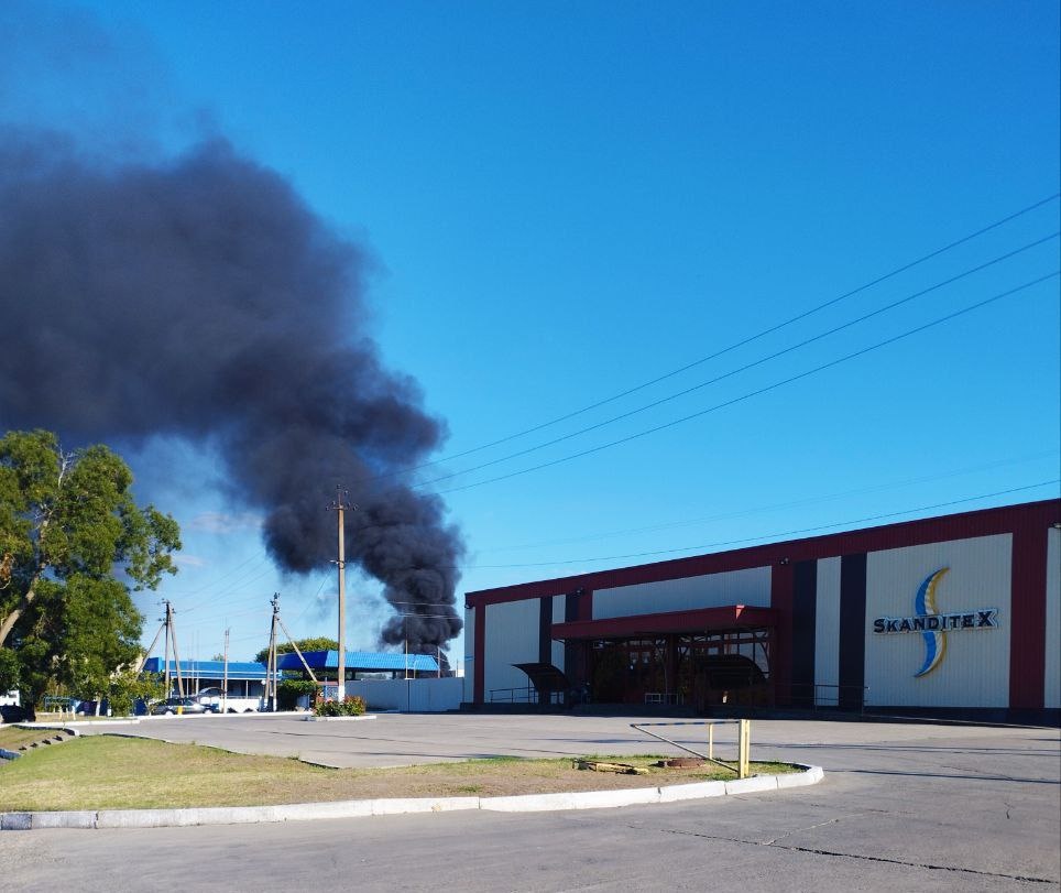 В Каховке неприятель уничтожил грузовые фуры, устроив пожар посредством сбросов боезарядов на территорию предприятия, на которой те были припаркованы.