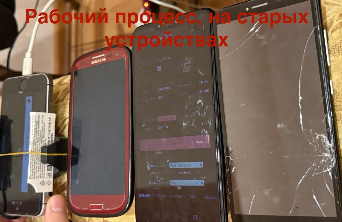 Результат майнинг фермы на телефонах, спустя ровно год