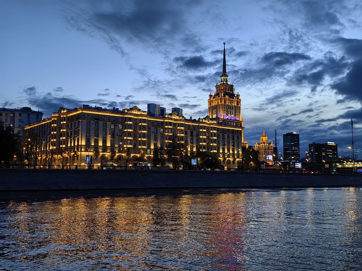 Реки и мосты. Москва в вечерних огнях. Прокатился на речном трамвайчике по маршруту 1. Оказалось, что это очень популярный маршрут, особенно вечером, так он проходит мимо Москва-Сити. Пришлось почти час стоять в очереди. #Huawei #Москва