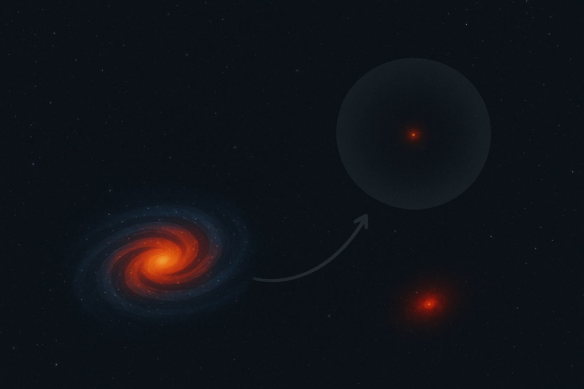 Чтобы понять идею, представим вращающийся пицца-тесто. Если оно крутится быстро, оно растягивается и получается широким и тонким. Если же вращение медленное, тесто останется плотным и компактным. Точно так же и с галактиками: скорость вращения их «тёмного каркаса» — тёмного материи гало — определяет, насколько большой или маленькой будет сама галактика.