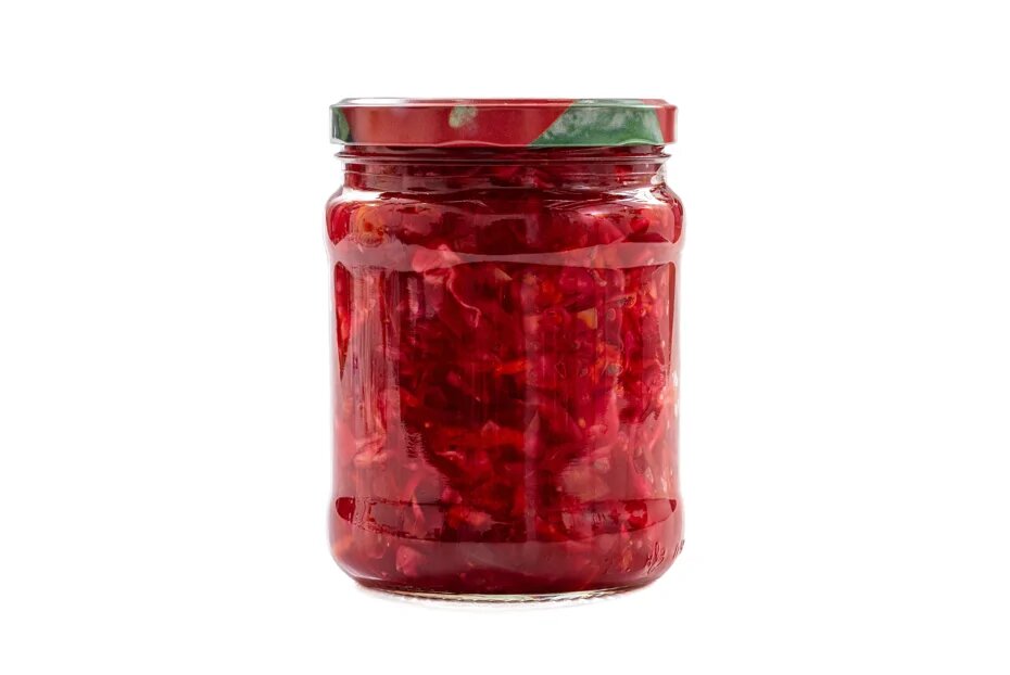 Свекла 600 г Белокочанная капуста 800 г Репчатый лук 200 г Морковь 350 г Сладкий перец 250 г Помидоры 800 г Кислые яблоки 150 г Соль 1 столовая ложка Сахар 2 столовые ложки Гвоздика 3 штуки Душистый перец горошком 5 штук Черный перец горошком 5 штук Растительное масло 125 мл Вода 250 мл Чеснок по вкусу Уксус 70%-ный 1 чайная ложка 1.Подготовить все ингредиенты. 2.Свеклу вымыть щеткой, поместить в холодную воду, поставить на средний огонь и варить 15 минут после закипания. 3.Очистить свеклу и нарезать соломкой. 4.Капусту нашинковать. Морковь натереть на крупной терке. 5.Лук, перец и помидоры нарезать небольшими кубиками. 6.Яблоки очистить от семян и нарезать соломкой. 7.В большую кастрюлю с тяжелым дном налить воду и масло. Сложить в кастрюлю нарезанные свежие овощи и перемешать. Затем добавить свеклу и снова перемешать. 8.Добавить к овощам яблоки, сахар, гвоздику, соль, оба вида перца и чеснок, пропущенный через пресс. Снова перемешать. Поставить на средний огонь, довести до кипени