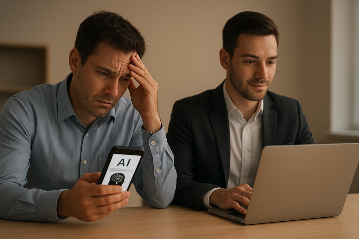 Давайте честно. Когда мы слышим про ИИ, что мы чувствуем на самом деле? Вспомните Алексея, 35-летнего менеджера. Он видит новость о том, что ChatGPT может заменить его профессию, и внутри все сжимается: "Что я буду делать? У меня ипотека, семья... Неужели через 5 лет я буду не нужен?". Это не просто тревога. Это глубинная боль от потери контроля над собственным будущим.
