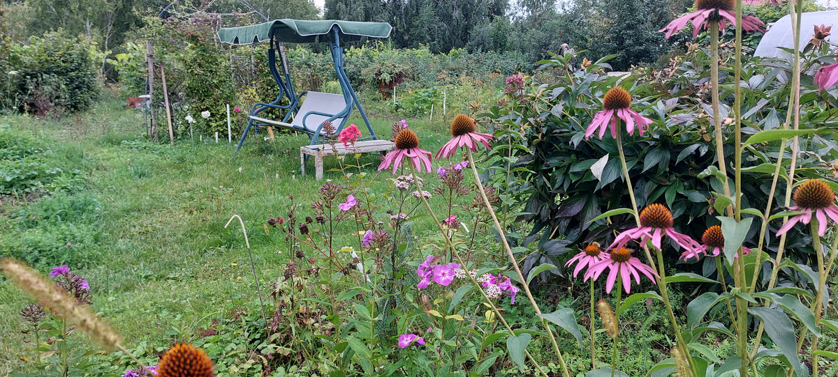 Вот я и любовалась сегодня яркими и еще летними однолетками циниями карликовыми и многолетниками своими разными. В общем, на всякий случай, я прощалась с разноцветными клумбами. Теперь пойдут сентябринки разные.