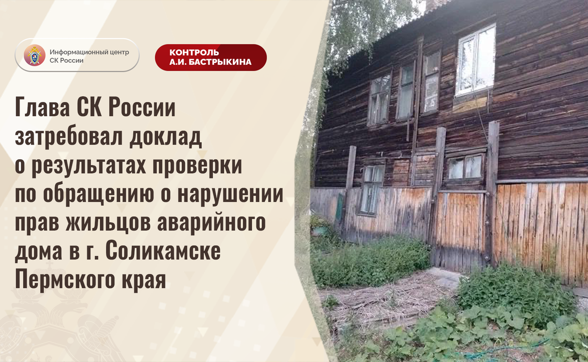 Глава СК России затребовал доклад о результатах проверки по обращению о нарушении прав жильцов аварийного дома в г. Соликамске