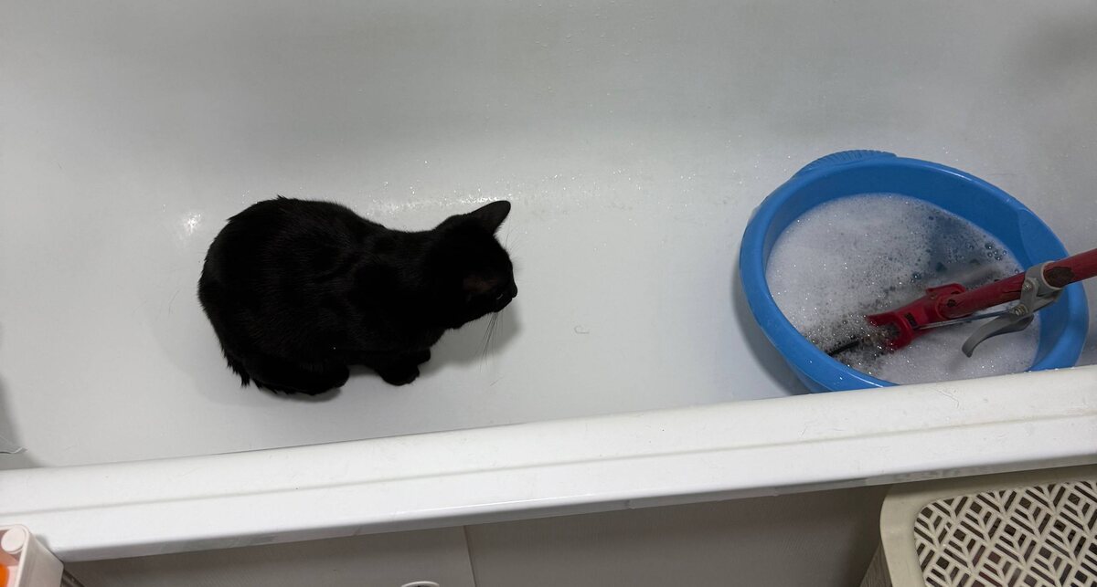 А вашим кошкам тоже настолько интересно, что они норовят залезть в ванную, чтобы посмотреть на лопающиеся пузыри в тазике для мытья полов