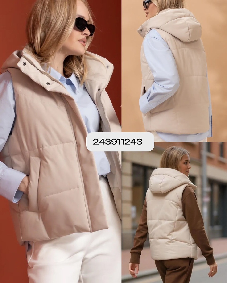1) Молочно-бежевая жилетка с капюшоном — арт. 243911243