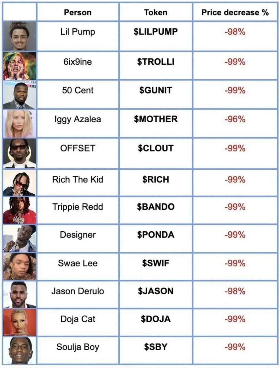 Самые сильные падения мемкоинов знаменитостей. @nemediatema