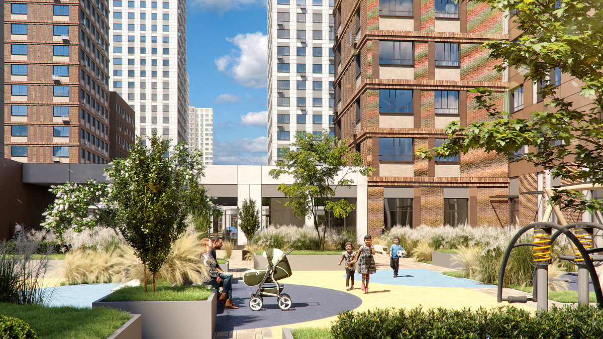 Особое внимание уделено благоустройству территории: во дворах появятся детские и спортивные площадки, прогулочные зоны, а автомобильный транспорт вынесен за пределы пешеходных пространств. В шаговой доступности находятся школы, детские сады, поликлиники и магазины.