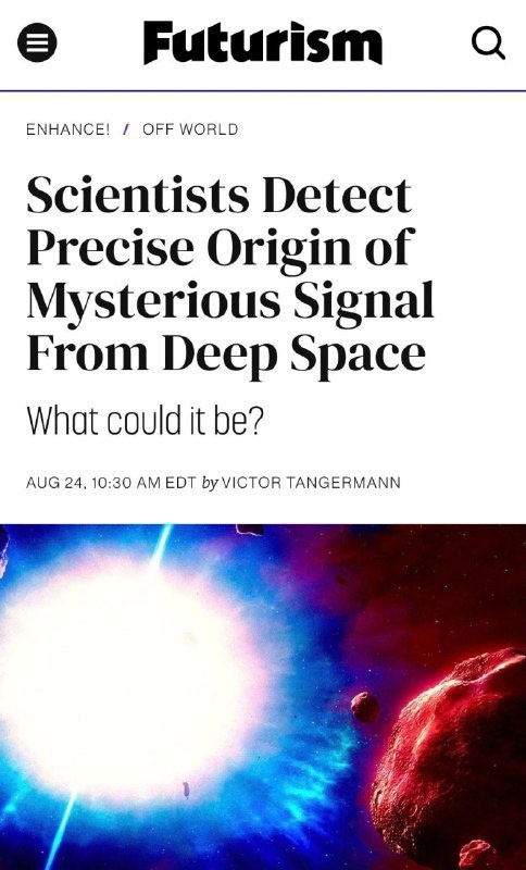 Инопланетяне могут реально стучаться к нам прямо сейчас — учёные зафиксировали необычный сигнал из глубин космоса, и это не бред конспирологов. • Астрономы поймали самый яркий радиовсплеск за всю историю и назвали его RBFLOAT. • Он прилетел из далёкой галактики NGC 4141 и был настолько мощным, что сперва решили — столкнулись звёзды. • По официальной версии, источник — магнетар, нейтронная звезда с лютейшим магнитным полем во Вселенной. • Но есть и другая гипотеза: именно так могла бы выглядеть попытка связи от внеземного разума. Если это правда, то пришельцы прямо сейчас пытаются выйти с нами на контакт. Мы на линии. Подробнее: https://hard-tm.su/threads/109680/ 🕹HARD-TM — Подписаться