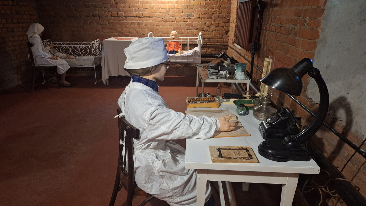В год столетнего юбилея СПбГПМУ и в честь 80-летия Победы в одном из зданий университета открылся необычный музей – в подвале административного корпуса было воссоздано одно из бомбоубежищ, в которых ленинградские дети спасались от обстрелов со стороны немецких и финских войск. Низкие потолки, кирпичные стены, истертые временем куклы, манекены врачей создают композиции, удивительно точно передающие обстановку того страшного времени. Так выглядит восстановленное в этом году бомбоубежище, в котором врачи и медсестры Педиатрического университета спасали тысячи ленинградских детей во время Блокады. Педиатрический институт значился на картах фашистских бомбардировок как объект 708. Фашисты прицельно, по нескольку раз в день, бомбили детскую клинику. В некоторые дни число артиллерийских обстрелов института достигало 8–12, ряд зданий пострадал от снарядов. Но в институтских клиниках лечились дети, и их надо было спасать. «В Ленинграде оставалось около полумиллиона детей, и центром их спасения