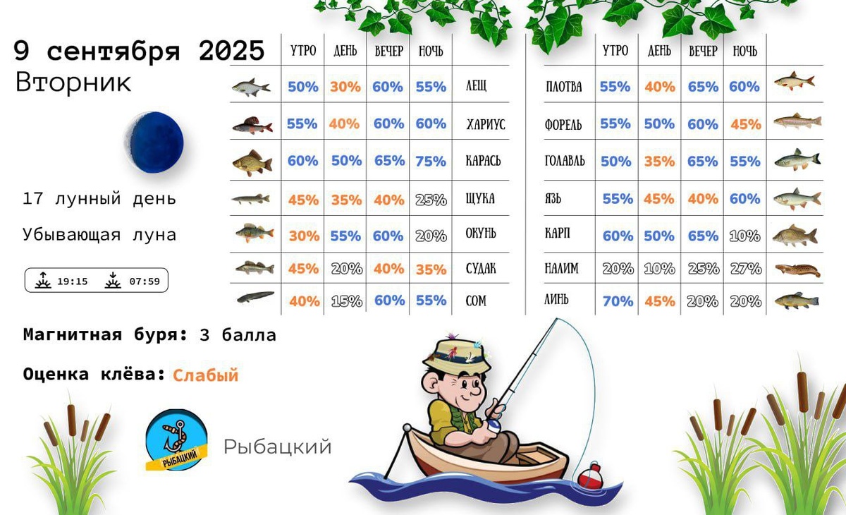 Прогноз клёва на 9 сентября по фазе и состоянию луны