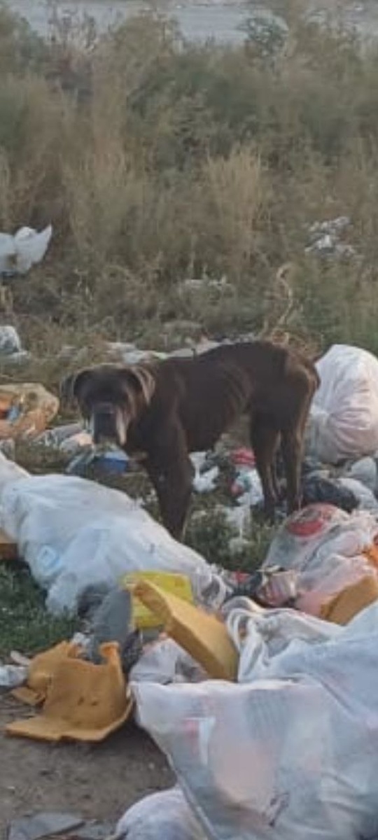 На свалке бродит вот такая собака.Скорее всего завезли, но может и убежал.