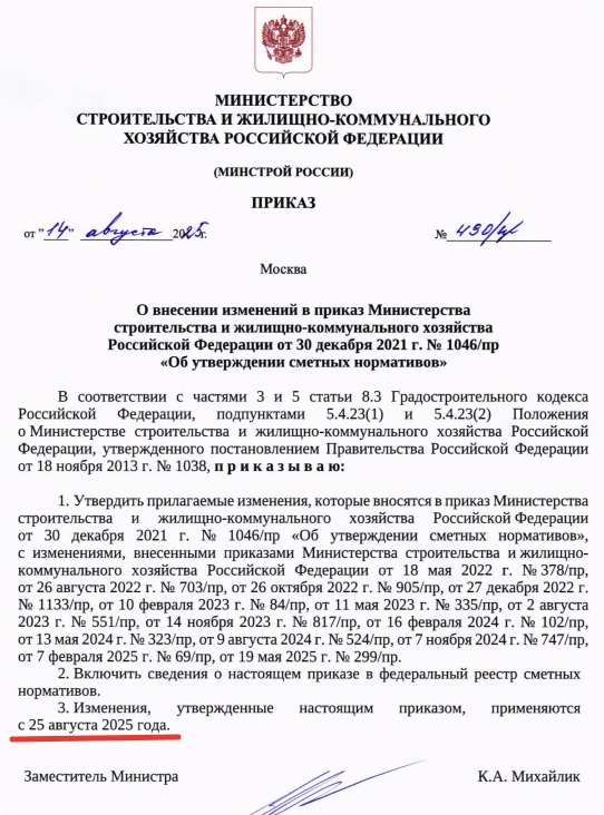 На основании Приказа Минстроя России от 14 августа 2025 г. № 490/пр с 25 августа 2025 года Применяются Пятнадцатые дополнения и изменения в новую федеральную сметную нормативную базу ФСНБ-2022: ☕Про традиции листаем и отмечаем, что нового или интересного нам приготовили авторы базы: 🔹🔹🔹 ГЭСН 05 "Свайные работы, опускные колодцы, закрепление грунтов" новые нормы: ГЭСН 07 "Бетонные и железобетонные конструкции сборные" ГЭСН 08 "Конструкции из кирпича и блоков" Внесено уточнение в общие положения, что данные нормы: 08-07-007-03 "Металлические модульные леса башенного типа высотой до 10 м: установка" 08-07-007-04 "Металлические модульные леса башенного типа высотой до 10 м: разборка" для металлических модульных лесов башенного типа - НЕ передвижные: ГЭСН 09 "Строительные металлические конструкции" Новые нормы для "глобальных" небоскребных объектов: Монтаж системы остекления фасадов из габаритных стеклопакетов по стоечно-ригельной присоединительной системе Из реальных примеров зданий с д