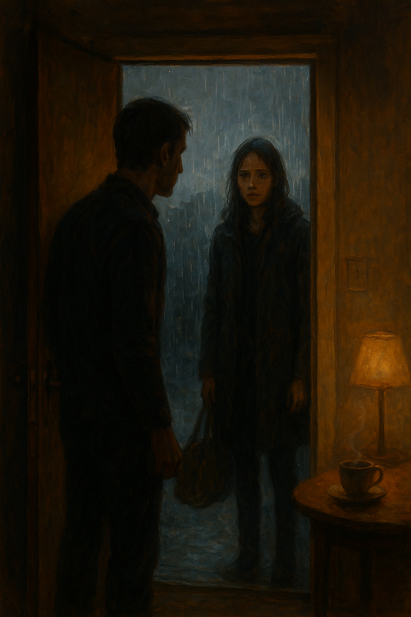 Он вернулся домой позже обычного. Дождь бил по асфальту, в подъезде пахло сыростью и пылью. День был тяжёлым, хотелось только одного — тишины и сна. Но стоило повернуть ключ в замке, как стало ясно: ночь будет другой. В коридоре стояла она. Невысокая, худощавая, с мокрыми от дождя волосами. В руках — потрёпанная сумка. На лице — тревога. — Ты?.. — выдохнул он, не веря своим глазам. Она кивнула. И тихо произнесла три слова, от которых кровь застыла в жилах: — Мне некуда идти. Десять лет назад он любил её до безумия. Они планировали свадьбу, спорили о том, как назвать будущих детей. Она смеялась звонко и искренне, а он верил: вот оно — счастье. Но однажды она ушла. Без объяснений, без записки. Просто исчезла. Все эти годы он пытался забыть. Встречал других женщин, строил отношения, даже думал, что полюбил снова. Но где-то в глубине души всегда жил вопрос: «Почему?» И вот теперь она стояла перед ним. Живая, настоящая, такая близкая. Они сидели на кухне. Чайник шумел, пар поднималс