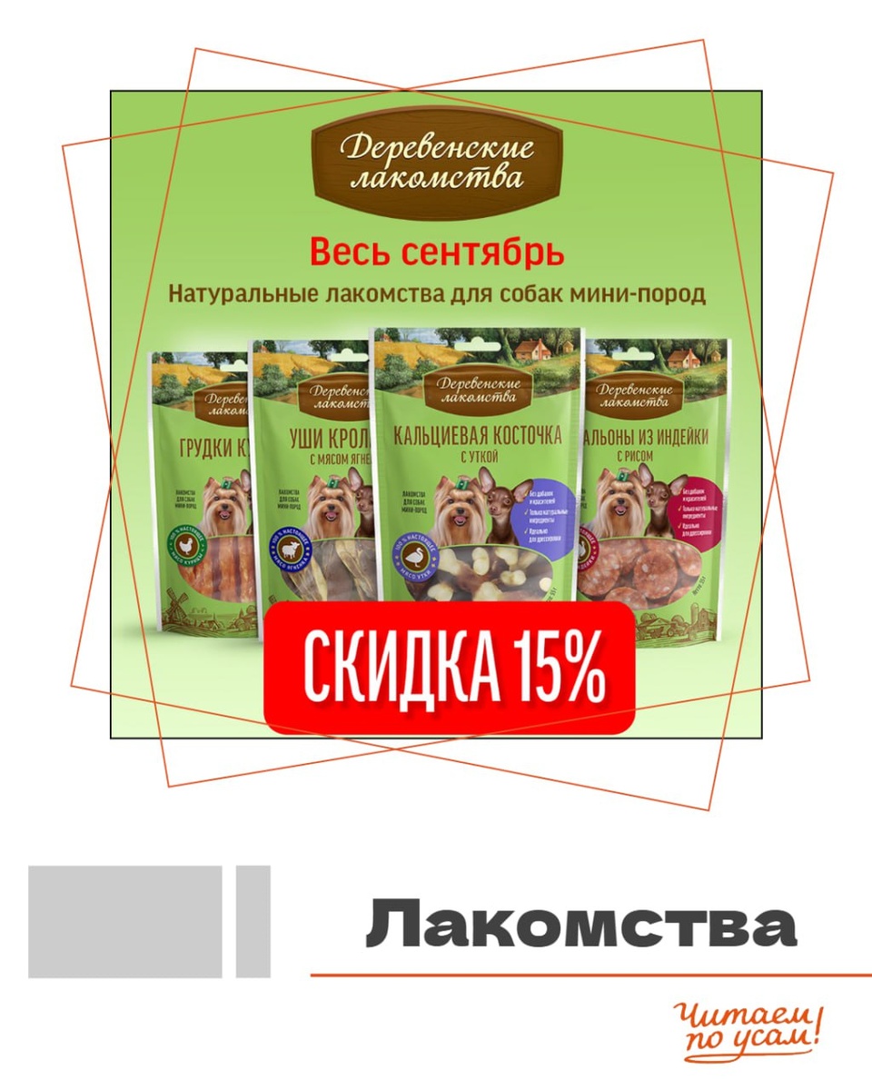 🐾 АКЦИЯ от «Деревенские лакомства»: СКИДКА 15% на все лакомства для мини-пород! 🎉 только до конца сентября