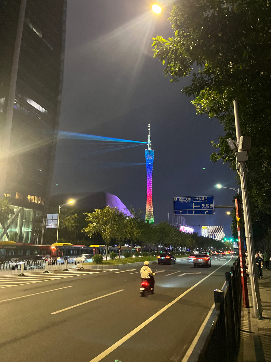 Я приехала в Гуанчжоу, заселилась в отель, прошлась по пешеходной улице, проехалась на туристическом автобусе и когда стемнело, решила отправиться на главную местную достопримечательность. Так как следующие несколько дней обещают быть дождливыми, то решила что лучше всего туда отправиться именно сегодня. Мой путь лежал к башне Кантон. Добираться до неё оказалось около 50 минут на метро, но когда меня это останавливало?😉