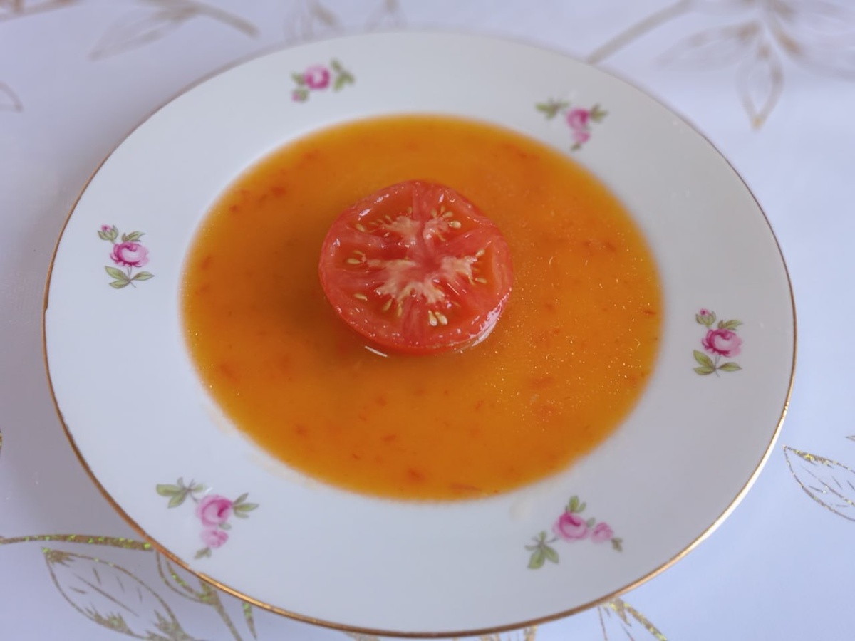 🍲 Овощной суп-пюре с маринованными помидорами 🌿 Лёгкий, но необычайно насыщенный вкус благодаря сочетанию батата, болгарского перца и специй. А маринованный помидор в подаче — главный акцент блюда. 🥕 Ингредиенты: 700 г молодого картофеля с кожурой, крупные кусочки 400 г батата с кожурой, крупные кусочки 100 г моркови с кожурой, средние кусочки 300 г красного болгарского перца, крупные кусочки Вода (чтобы покрыла овощи, всего до 2 л) 2 ч. л. соли щепотка асафетиды 0,5 ч. л. смеси острых специй Гарам масала 1 ст. л. сливочного масла консервированные помидоры — по 0,5 шт. на порцию 👩🍳 Приготовление: Отварите овощи в воде до мягкости. Добавьте соль, асафетиду и Гарам масалу. Взбейте погружным блендером в пюре. Доведите до кипения, снимите с огня и вмешайте сливочное масло. Подавайте горячим или тёплым, добавив в каждую тарелку половинку консервированного помидора. ✨ Секрет: если хочется более нежной текстуры, суп можно протереть через сито. #супы@UsefulDelights