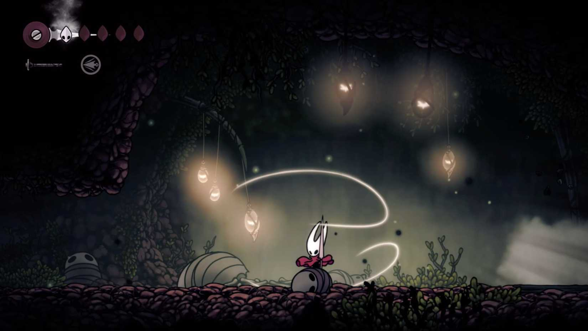 Игла Хорнет – и оружие, и удобный инструмент для передвижения. Бейте вниз под углом, чтобы отскакивать от врагов или шипов и оставаться в воздухе. Серьезно, просто делайте это: механика позволяет и драться, и уклоняться одновременно. Без нее и половину платформинга не пройти.