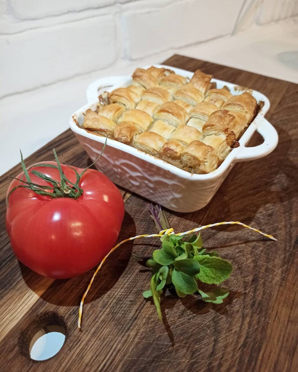 ...И да, это тот самый пирог, после которого даже самые привередливые домашние скажут: «Это было то самое "что-нибудь вкусненькое"!» Знаете это чувство, когда вечером раздаётся вопрос: «А что на ужин?», и хочется ответить что-то волшебное, но в голове — только котлеты и макароны? Я — да. Но однажды я собрала всё, что было в холодильнике: фарш, лук, морковку, заветный пакет замороженного горошка и остатки слоёного теста. Через пару часов на столе стоял пирог, от которого пахло детством, уютом и чем-то таким, что заставляет просить добавки даже тех, кто обычно ковыряется в тарелке. Теперь это наше семейное «что-нибудь вкусненькое». Делитесь рецептом с теми, кого хотите накормить счастливыми! 🥧 Почему этот пирог стоит приготовить сегодня: · Универсальность. Подходит и для фарша, и для кусочков мяса — можно использовать то, что есть под рукой. · Сытность. Мясо, картошка, тесто — это полноценный ужин, после которого не захочется холодильник. · Уют. Аромат тушёного мяса и свежеиспечённого т