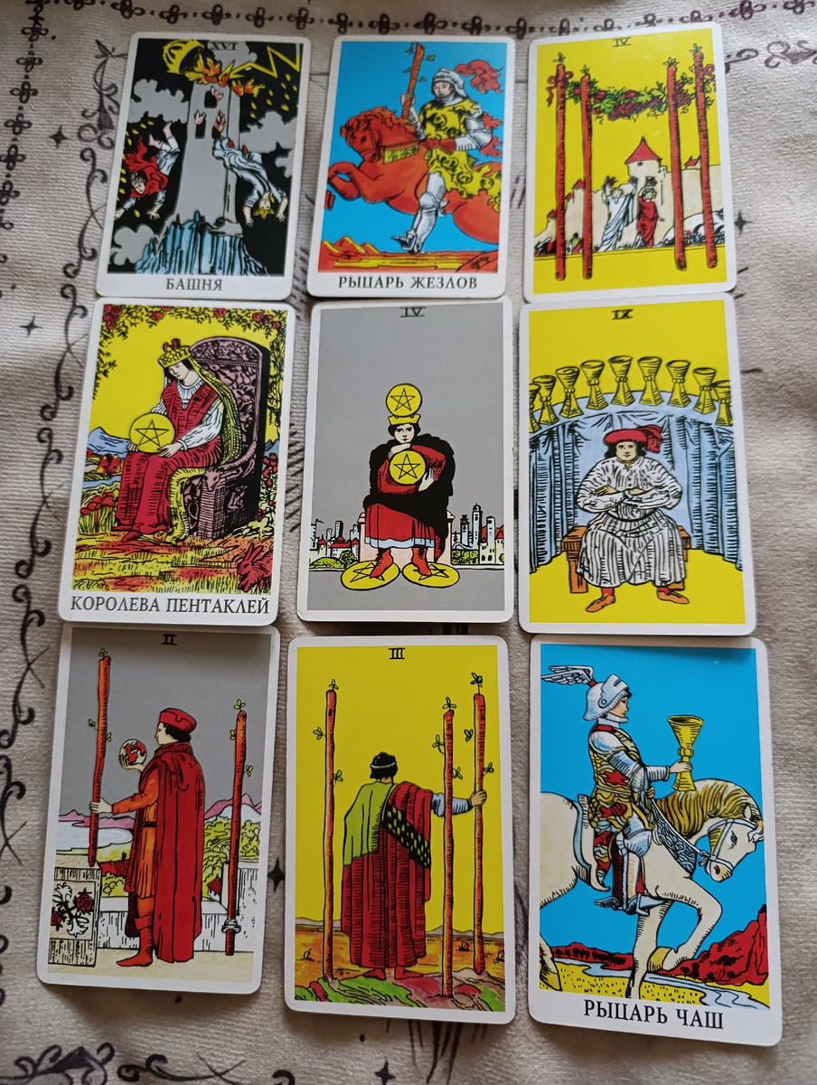 -- Первая строка (первый слой мыслей и переживаний): - Башня — сильное внутреннее потрясение или перемены. Этот мужчина может переживать кризис или сильное разрушение прежних основ в своей жизни. - Рыцарь Жезлов — энергия, стремление к действию, импульсивность. Он настроен активно двигаться вперед, возможно, хочет резко изменить ситуацию. - 4 Жезлов — стремление к стабильности, празднованию, комфорту в личной жизни. Он хочет почувствовать радость, уют и безопасное пространство. Вывод: В мыслях у него конфликт между внезапными переменами и желанием стабильности. Он полон энергии, чтобы что-то менять, но мечтает о комфорте и радостных моментах. --- -- Вторая строка (внутренние чувства и ценности): - Королева Пентаклей — забота, материальная стабильность, практичность и теплота. - 4 Пентаклей — страх потерять то, что есть, желание контролировать ситуацию и беречь накопленное. - 9 Чаш — удовлетворение, исполнение желаний, эмоциональный комфорт. Вывод: В душе мужчина ценит безопасност