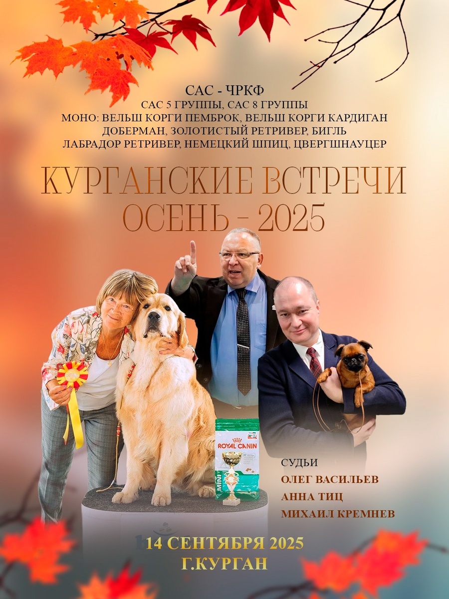 ⏰ 14 сен (7д) 🏛 #Курган #Россия #Выставка 🐶 Выставка собак: Клуб собаководства "Курган-Град" 🏆 Клуб собаководства "Курган-Град" Контакты организаторов здесь: 🌐 https://www.petsman.ru/vystavki-sobak.php?mesto=2637-kurgan 🔴САС Чемпион РКФ 🔵САС 5 группы + Speciality (Басенджи, Немецкий шпиц, Чау-чау, Якутская лайка) 🔵САС 8 группы+Speciality (Золотистый ретривер, Лабрадор ретривер) 🟢Блок монопородных выставок: 🔹Бигль 🔹Вельш Корги Пемброк 🔹Вель Корги Кардиган 🔹Доберман 🔹Золотистый ретривер 🔹Лабрадор ретривер 🔹Немецкий Шпиц 🔹Цвергшнауцер 🧑 👨 Эксперты: 🔹 Васильев Олег 🔹 Кремнев Михаил 🔹 Тиц Анна