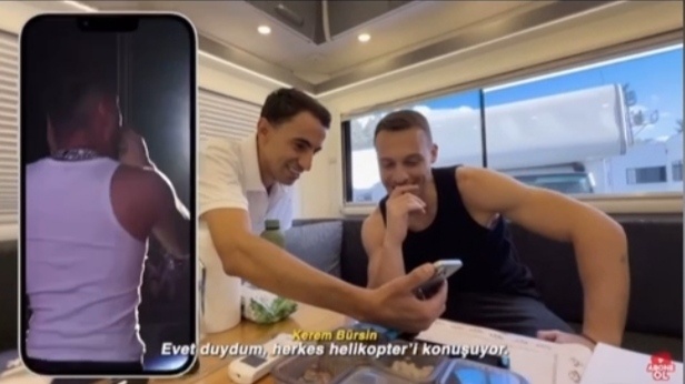 Посмотри-ка сюда, старик, смотри, какое классное видео снял концерт! (показывает Керему клип на экране телефона)
