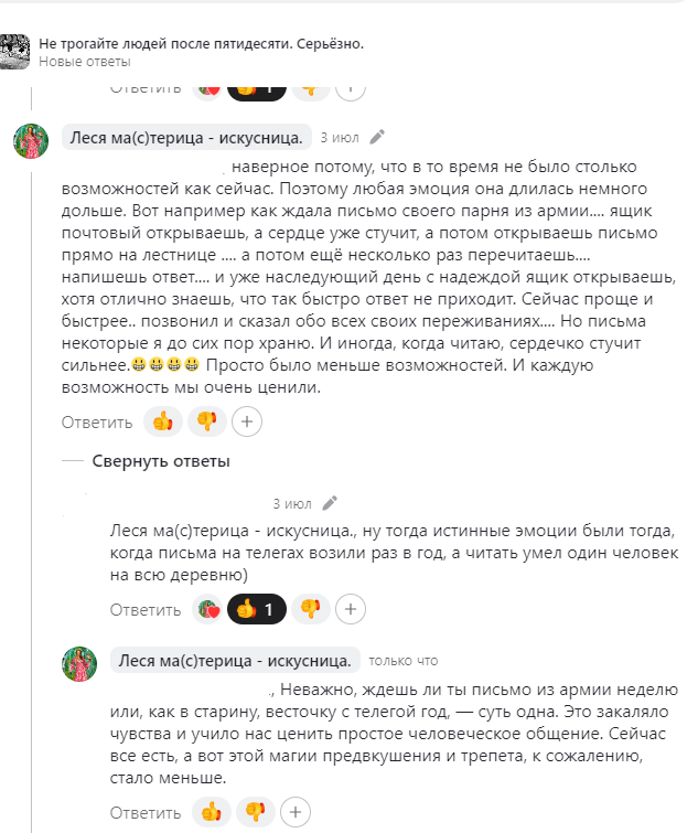 Меня зовут Леся Мастерица, и ко мне в блог пришел вот такой комментарий — настоящая история из прошлого, про ожидание писем из армии. Он задел меня за живое, ведь в этих простых словах — целая философия целой эпохи! Не смогла пройти мимо — и прямо на глазах из этого отклика родилась целая статья. Хочу поделиться с вами этими мыслями о том, как мы тогда растягивали эмоции и как сегодня гаджеты помогают нам, но и меняют само течение наших чувств. Вот кусочек моей переписки с одним из подписчиков: Иногда мне кажется, что настоящее наше богатство заключалось не в деньгах, а во времени. Во времени, отведенном для чувств. Знаете, в чем была магия той эпохи? В дефиците. Не было этой бесконечной возможности сорваться и позвонить в любую секунду. И оттого каждая эмоция была на вес золота. Ей давали вызреть, как дорогому вину. Её растягивали, смаковали, берегли. Вот как эти письма... Помните? Подходишь к почтовому ящику, а у тебя уже сердце в пятки уходит и обратно выскакивает — колотится, б