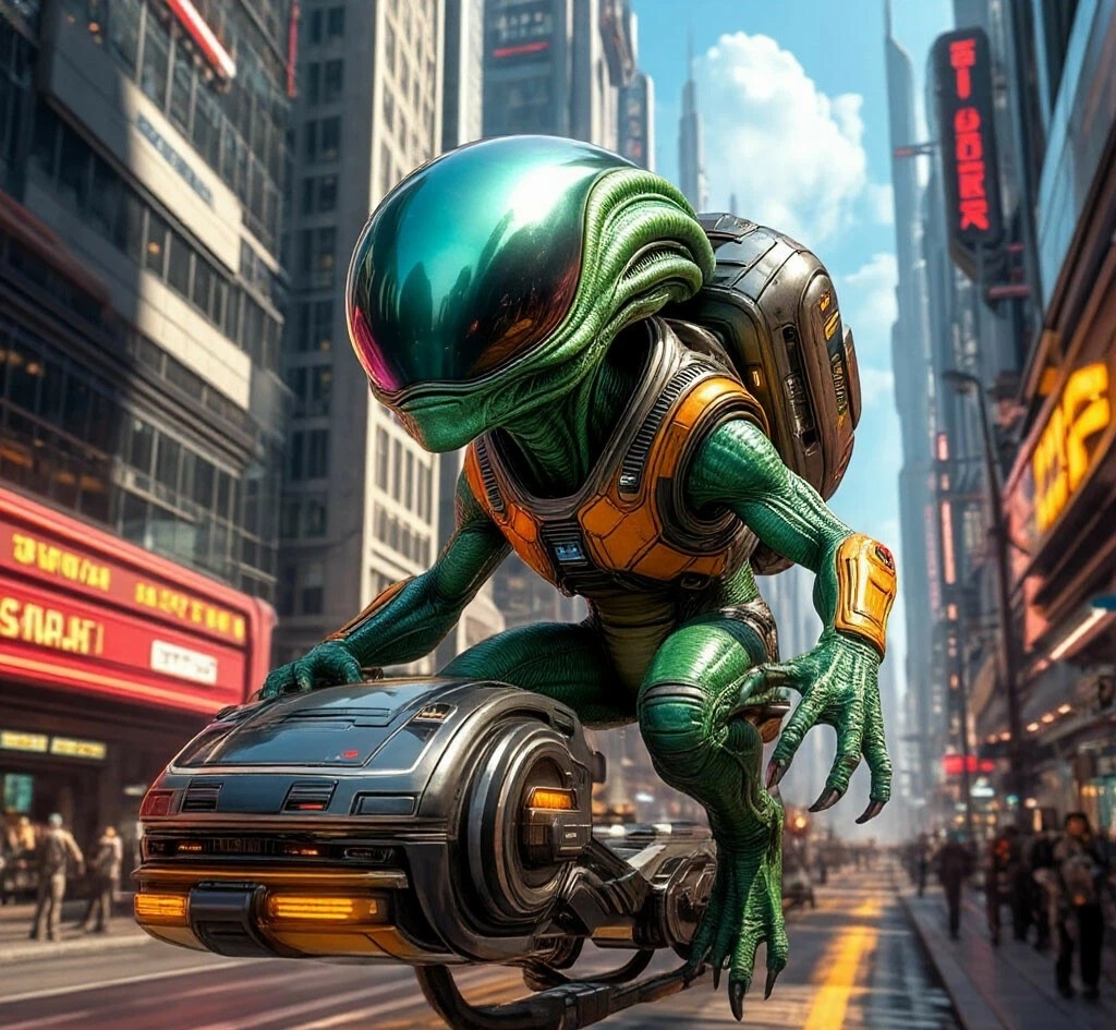 Альен и Космит вышли из офиса большого города после рабочего дня и направились к излюбленному бару, чтобы пропустить пару стаканчиков и обсудить дела насущные. Пока они неспешно тащились по тротуару, мимо них пролетело на турбопеде тощее существо с большой головой, торчащими зубами, длинными конечностями и желтоватого цвета телом. Оно чуть не задело Космита коробом, висевшим на сгорбленной спине. Существо было инопланетянином-доставщиком еды. Космит отшатнулся и поежился от отвращения. Он никак не мог привыкнуть к их внешности. Он в сердцах выругался и с возмущением обратился к Альену: - Как же достали эти "чужие"! Сколько можно терпеть их хамство?! От них уже деваться некуда! Их все больше и больше! Зачем их вообще пускают к нам на планету? Пфф! Альен скептически усмехнулся и сказал: - Дружище, это же дешевая рабочая сила. Правительство на них зарабатывает. Это система и ничего против этого не сделаешь. Пойдем лучше выпьем. - Главное никто ведь у нас не прижился, ни венериане ни цен