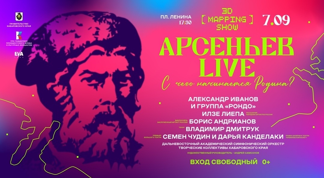 ⚡️ Друзья! Присоединяйтесь к просмотру трансляции фестиваля «Арсеньев LIVE»! https://vk.com/video-214364046_456239075 Место проведения: Площадь Ленина Начало фестиваля: 17:30 Музыкально-просветительский фестиваль «Арсеньев LIVE» проходит при поддержке Президентского фонда культурных инициатив и Правительства Хабаровского края. ❗️ Хедлайнер музыкальной прогоаммы - Александр Иванов и группа «Рондо»! #АлександрИванов #Рондо #группаРондо #Хабаровск #АрсеньевLIVE #фестиваль