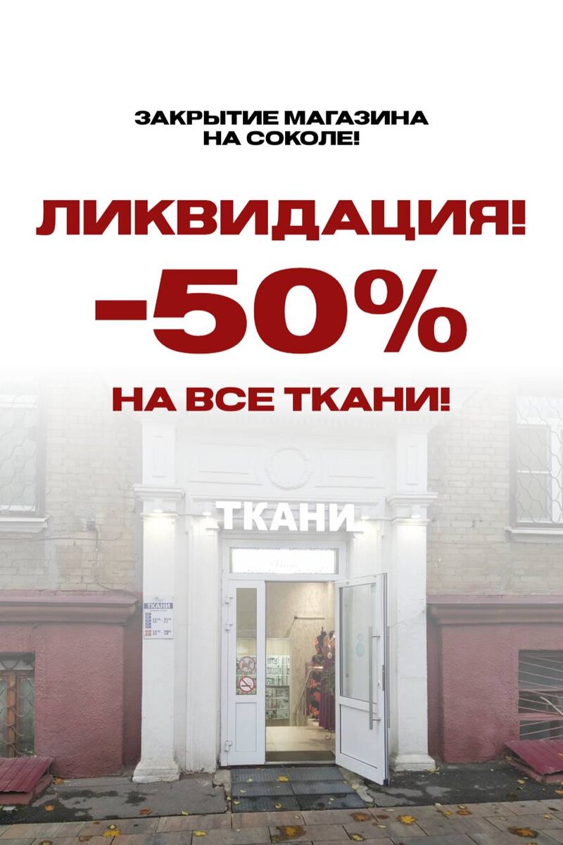 ◦ Скидка действует с 7 по 30 cентября на все ткани из ассортимента магазина по адресу м.Сокол ул. Новопесчаная 19к1