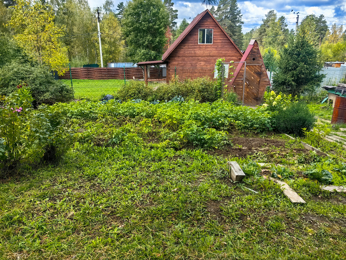 Синоптики нас не обманули, пришли дожди и похолодание. Хотя заморозков и не было, но прохладные ночи и сырая погода сразу напомнили, что осень вошла в нашу дверь. Подумала я, подумала и решила всё же выкопать картофель, чтобы не заболел он всякими грибковыми болезнями, тем же фитофторозом. Ну и пусть большая часть поля ещё зелёная, по срокам его уже копать пора. А день субботний обещал быть без дождя, хотя не жарким. Самое то, чтобы просушить выкопанную картошку. С таким настроем и мыслями поехала я вчера на дачу. Дача встретила меня сыростью, холодным ветром и прохладой. Трава отросла, словно её и не косили недавно, а картофель до сих пор весь зелёный. Вот первый раз такой! Обычно к этим числам сентября ботва практически вся у меня отмирала, только стояли сухие стебли на поле. А берёза уже успела накидать на огород свои жёлтые листья, да и сосна всё засыпала иголками. Огород всё-таки выглядит уже по-осеннему. Хотя бархатцы цветут, стараются и радуют взгляд своими яркими цветами