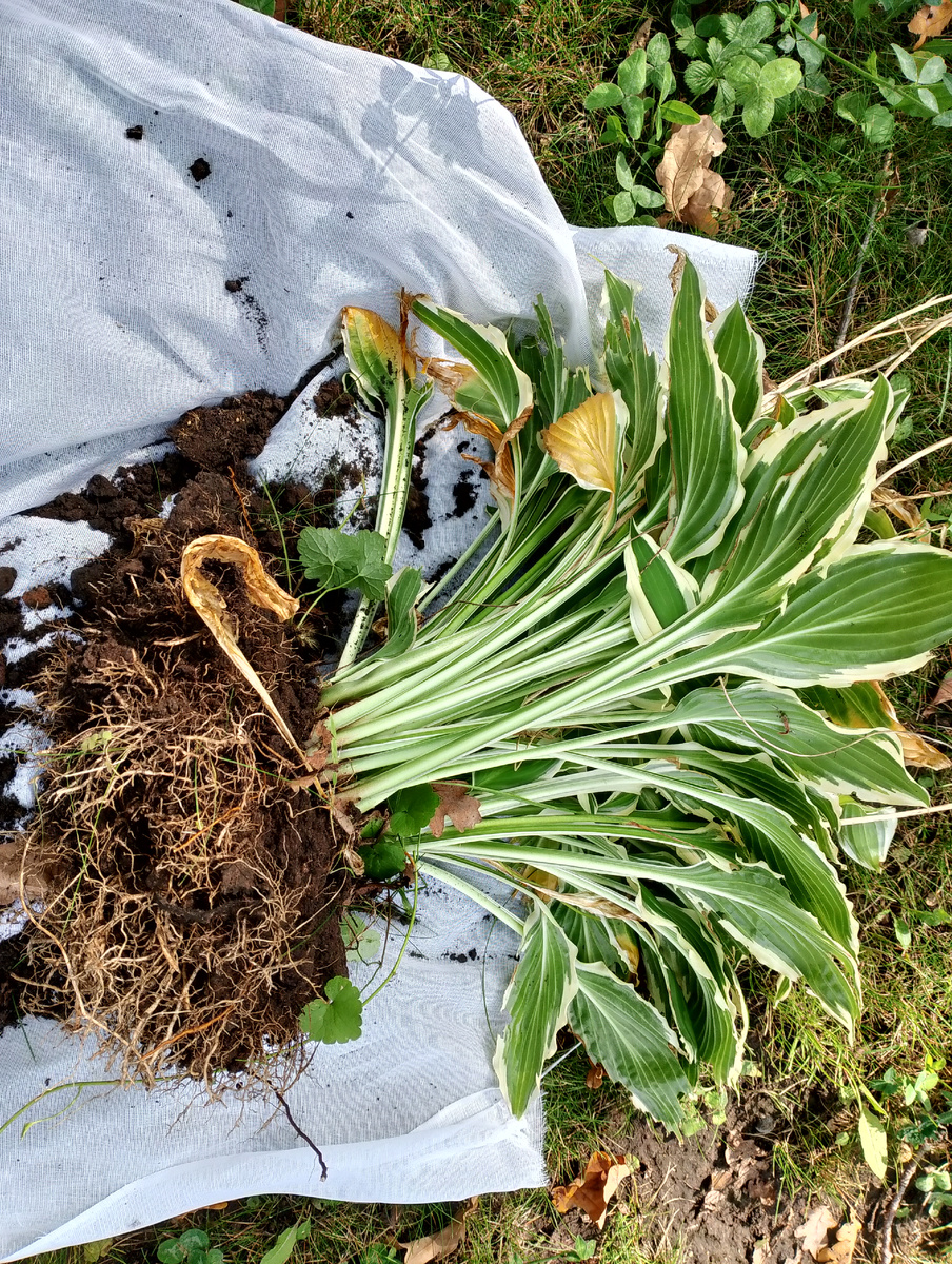 В этом году переехали в новый дом, здесь участок земли 23 сотки. Всё заброшено. Начала строить сад своей мечты. Эти хосты выкопала с солнцепёке, им там явно было некомфортно. Сажать буду в тень, в лесную зону, у меня там растут дубы. Итак, сейчас середина сентября, я выкопала хосту, затем Удалила всё отцветшие цветоносы, убрала сорняки и засохшие листья Вот такая красота получилась 🥰 далее Взяла острую лопату и на глаз посередине её поставила Получилось 2 хосты 🥰 Затем... Выкопала яму, приблизительно 40*40 и глубиной сантиметров 40 На грунт хорошенько насыпала перлит. Так как хоста любит рыхлую и увлажненную почву, на мой взгляд, перлит ей не повредит. Я покупаю его в 100 литровом мешке, стоимость в районе 1000 рублей. Применяю везде и в саду и в огороде. Хорошо перемешала всё комочки с перлитом Так, как уже осень, то взяла минеральное удобрение двойной суперфосфат. У меня слабоокультуренная почва, поэтому по инструкции внесла 30 гр. Перемешала, добавила немного грунта Ямку п