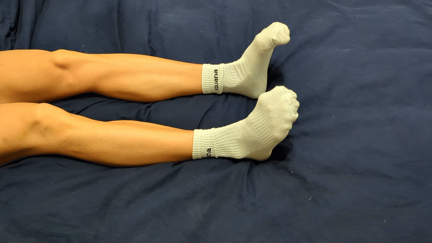 Затем сгибаю и разгибаю стопы к себе и от себя
