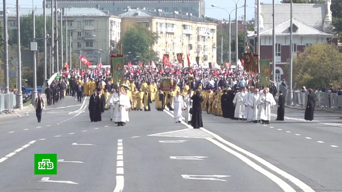 [ Смотреть видео на сайте НТВ ] Власти назвали число участников крестного хода в центре Москвы. Как сообщили в столичном департаменте нацполитики и межрегиональных связей, в общемосковском крестном ходе приняли участие свыше 40 тысяч человек. Они прошли от храма Христа Спасителя до Новодевичьего монастыря. Общая длина маршрута составила около 6 километров. Шествие возглавил патриарх Кирилл. Патриарх Кирилл: «Москва — реально православная столица нашего отечества. Город, с одной стороны, открытый для наших собратьев из других религий, признающий их вклад в нашу общую историю, но вместе с тем и город, который не откажется от своего христианского наследия». Крестный ход был приурочен ко Дню празднования Собора Московских святых. В РПЦ ранее назвали сегодняшнее шествие возрождением традиции больших общемосковских крестных ходов, проводившихся до революции 1917 года. По материалам: РИА Новости. [ Смотреть видео на сайте НТВ ]