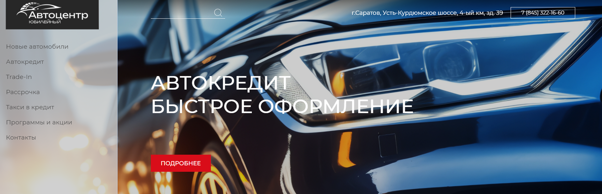 Автоцентр Юбилейный — это автосалон в Саратове. Занимается продажей новых автомобилей. В каталоге есть марки и модели, которые не производятся в России более 3 лет. Информацию об их наличии и стоимости верифицировать не удалось.