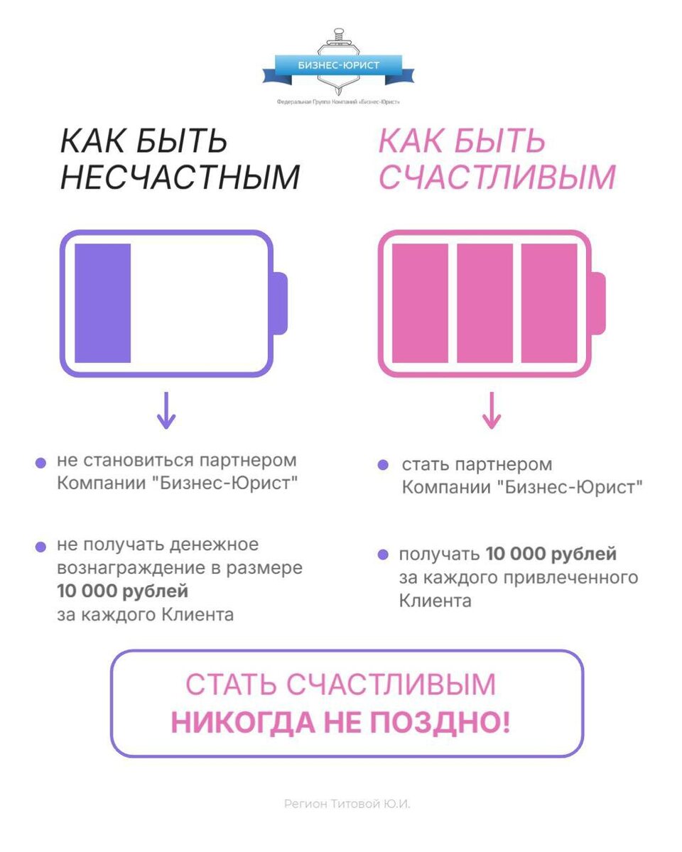 Дорогие друзья❗ Напоминаю Вам о том, что в нашей Компании есть партнерская программа❗ Если от Вас приходит Клиент и после бесплатной консультации заключает договор, Вы получаете 10.000 рублей!❗ Количество людей, которые могут прийти от Вас неограниченно👍 ✅Хотите помочь своим знакомым, близким и родственникам, в трудной жизненной ситуации и стать партнером Компании “Бизнес-Юрист”? 📨Пишите в личные сообщения!