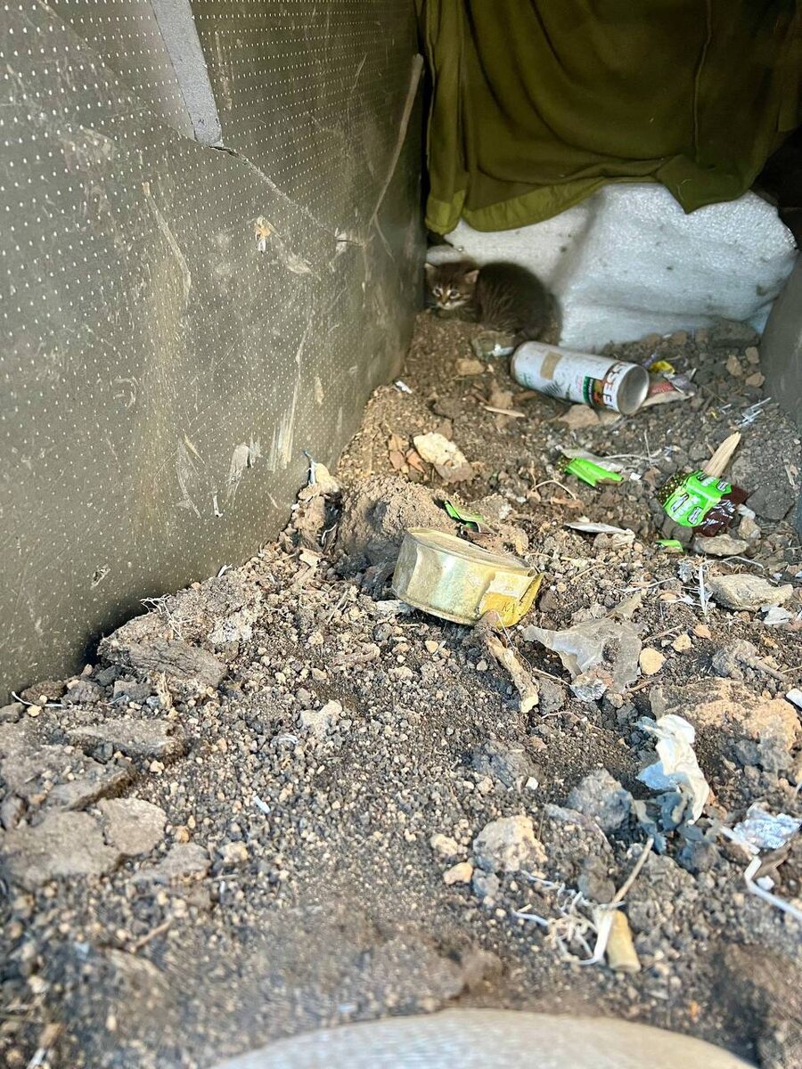 Сапёры вытащили котенка из западни.