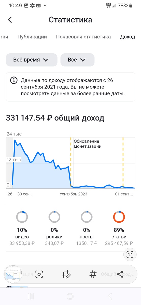 Так выглядит кривая авторских выплат на моем канале в Дзен с сентября 2021 года.