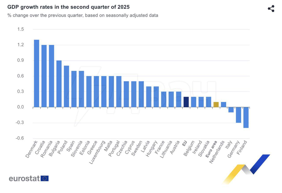 - Ещё недавно все экономические обозреватели дружно называли Германию «больным человеком Европы». Но свежие данные за второй квартал 2025 года показывают: дна достигла Финляндия, а в тройке аутсайдеров — Италия и та самая Германия.