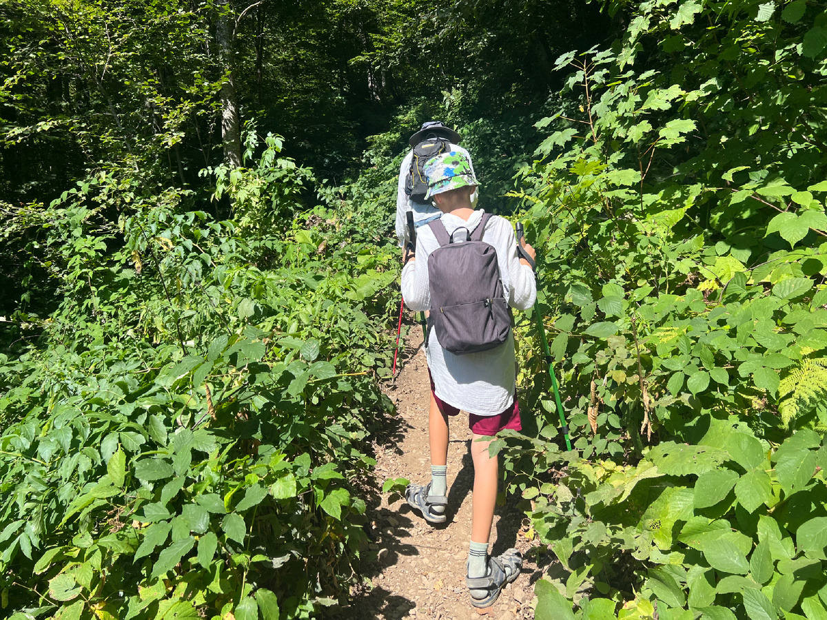 Вначале идти было очень привольно. Дорога широкая и ровная, птички поют, утро, солнце светит, но ещё не очень жарко. Но после второго перехода через реку Бешенка начался подъём.